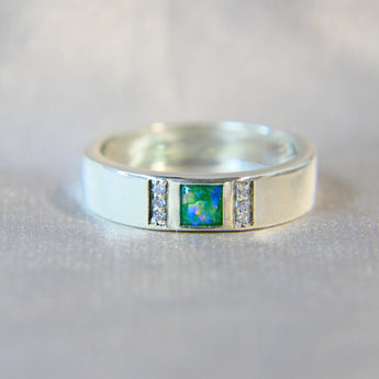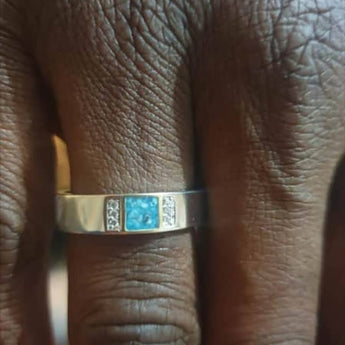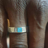 • A flat band ring with a masculine nature, a little bit of bling but not too much, perfect for casual wear