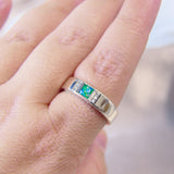 • A flat band ring with a masculine nature, a little bit of bling but not too much, perfect for casual wear