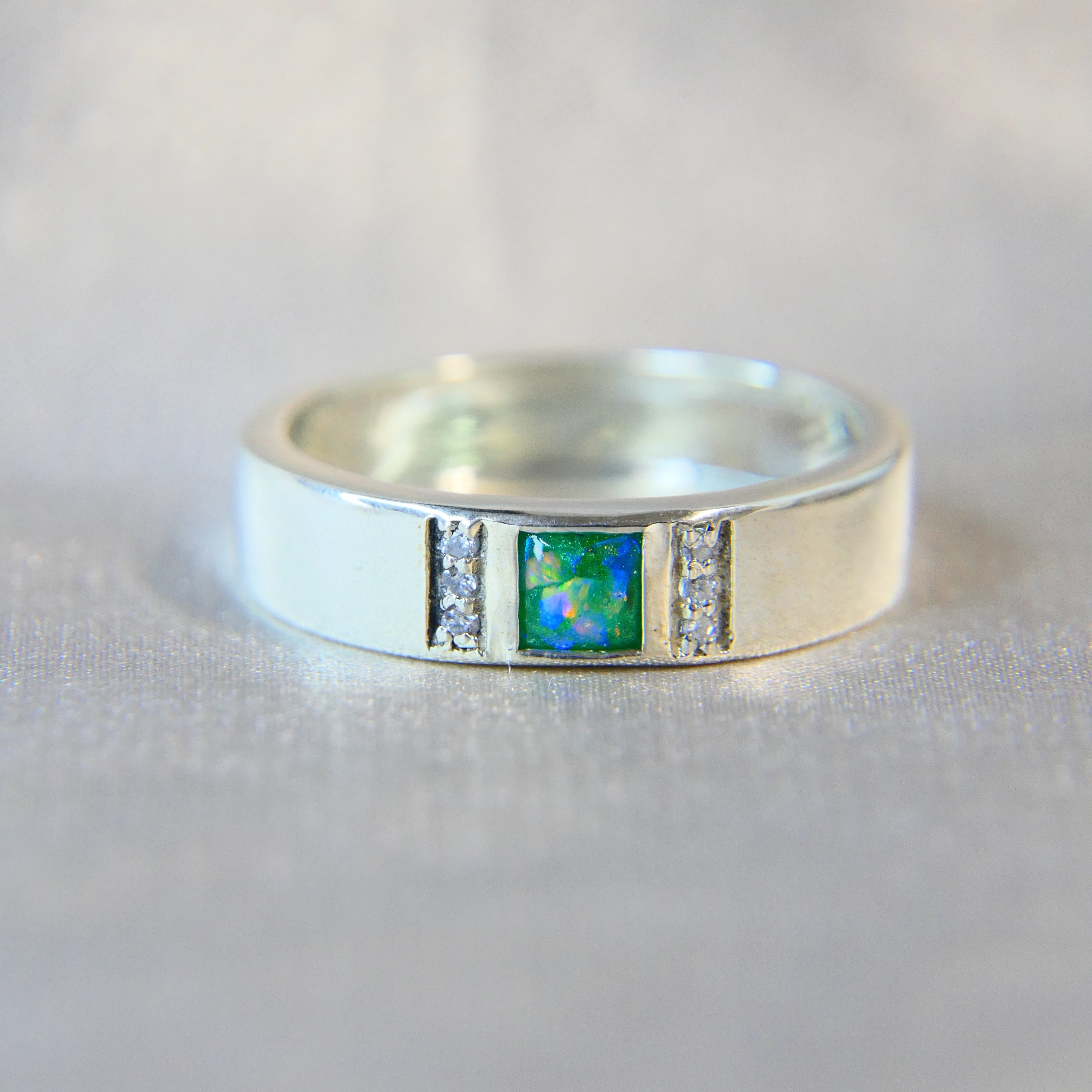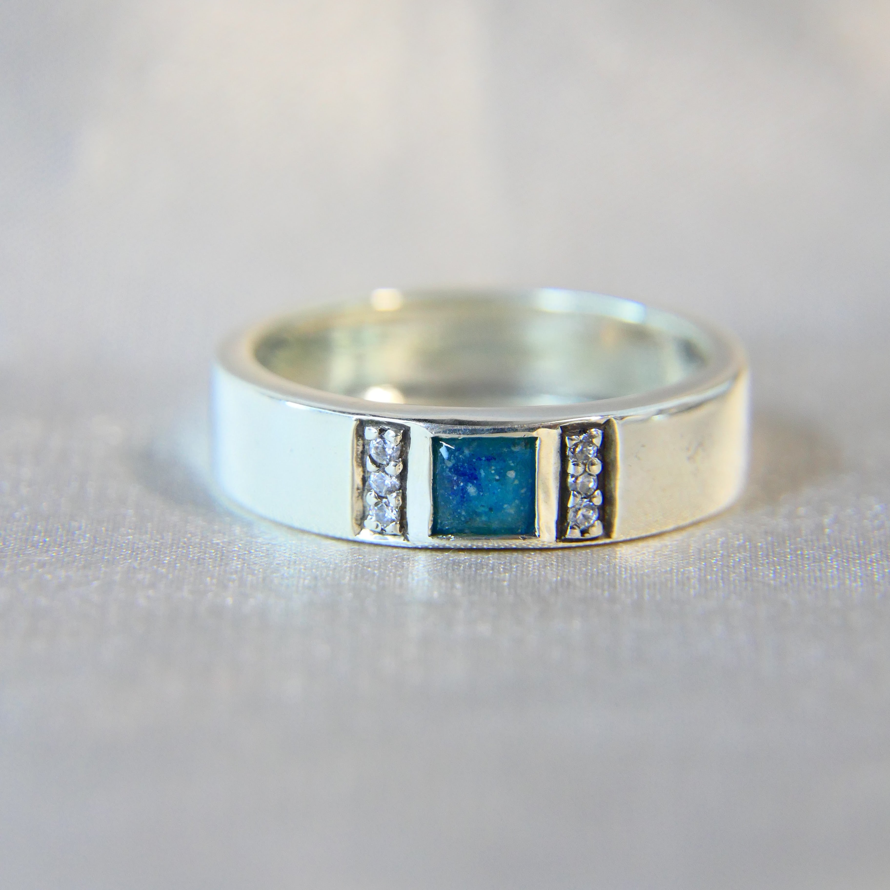 Although your loved one is no longer on earth, a little piece of their soul body remains within this precious ring. When you place this ring on your finger you will feel sadness and joy all wrapped into one, the sadness that your loved one is gone, but the joy that they are now always with you in a very special way. Your most precious memories are worn upon your finger, inspired by your loved one