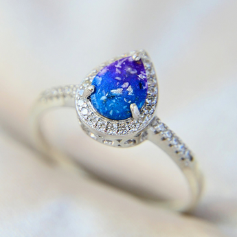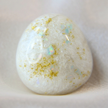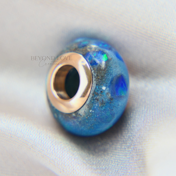 Breastmilk, hair, gold fleck and pear white shimmer with cornflower blue opal