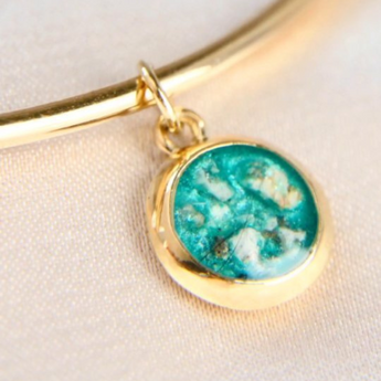 Breastmilk, umbilical cord, crystal shimmer, rose gold flecks and 1 green speck