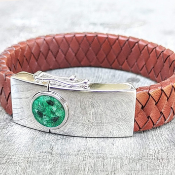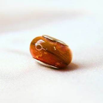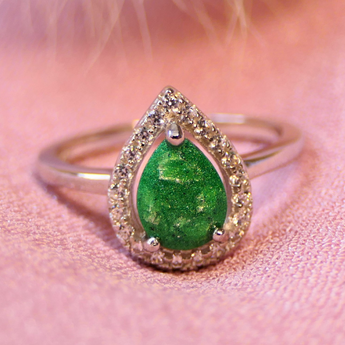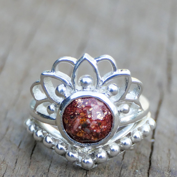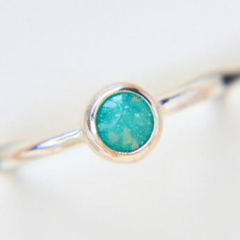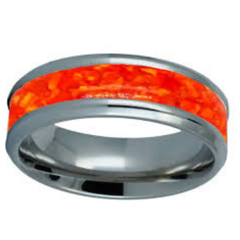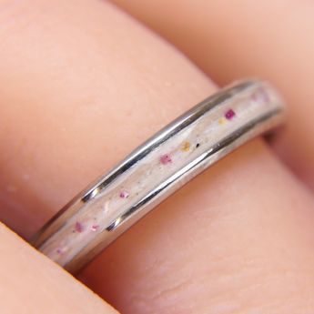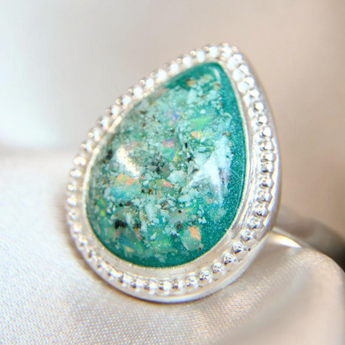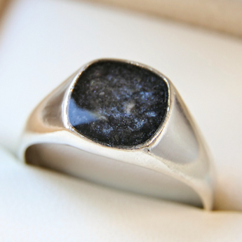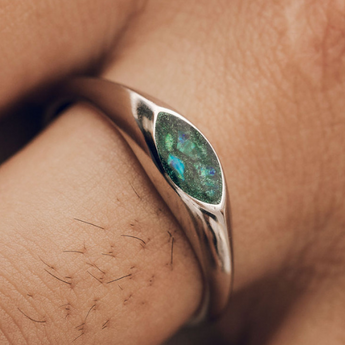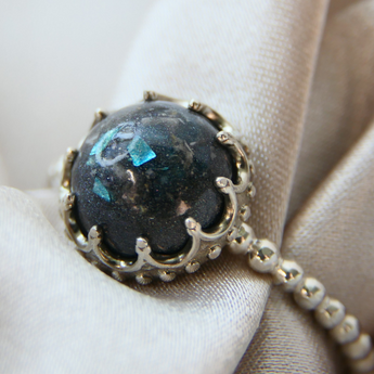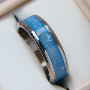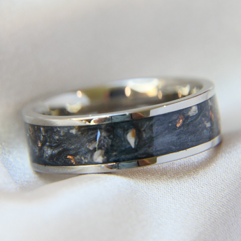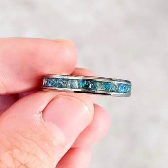 Memorial band with ashes, charcoal grey shimmer and blue flecks/blue opal