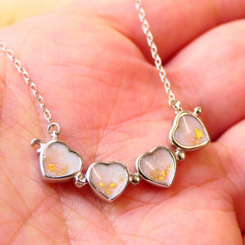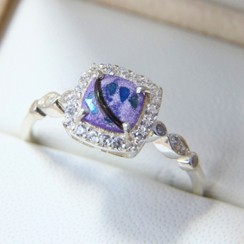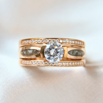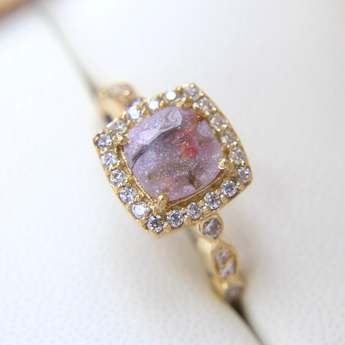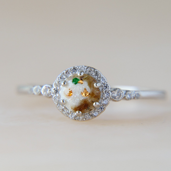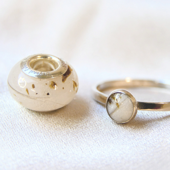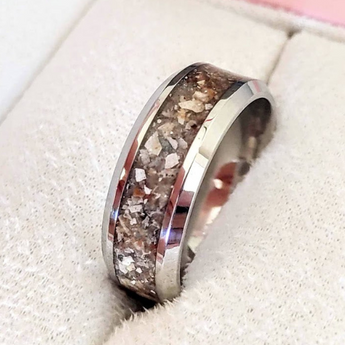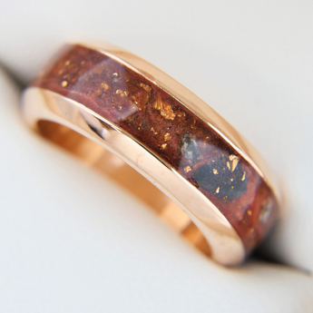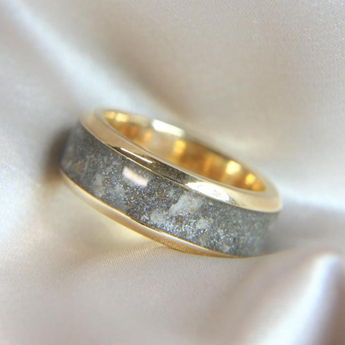 Yellow gold keepsake band with ashes and charcoal grey shimmer