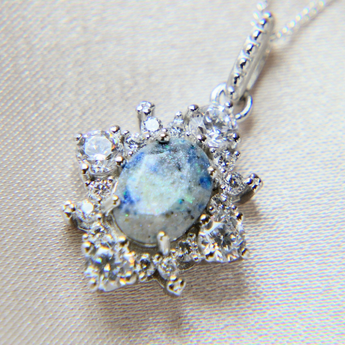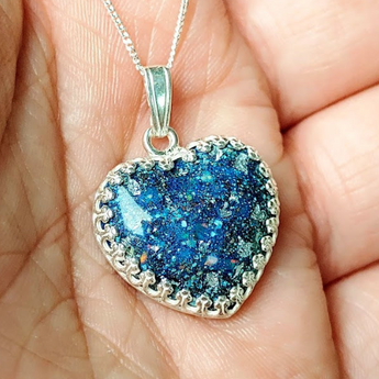 Ashes pendant with light blue shimmer and crushed white opal