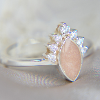 Speak softly with light pink. Pairs well with crushed pink opal.